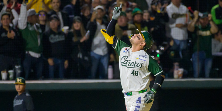 El “Tornillín” volvió a cimbrar el estadio en el cierre de la sexta entrada; tras dos outs y con uno en base, Víctor González fue llamado a relevar a Pedro Reyes para enfrentar a Rodolfo Amador y este le recibió con tremendo batazo de cuadrangular a banda contraria.